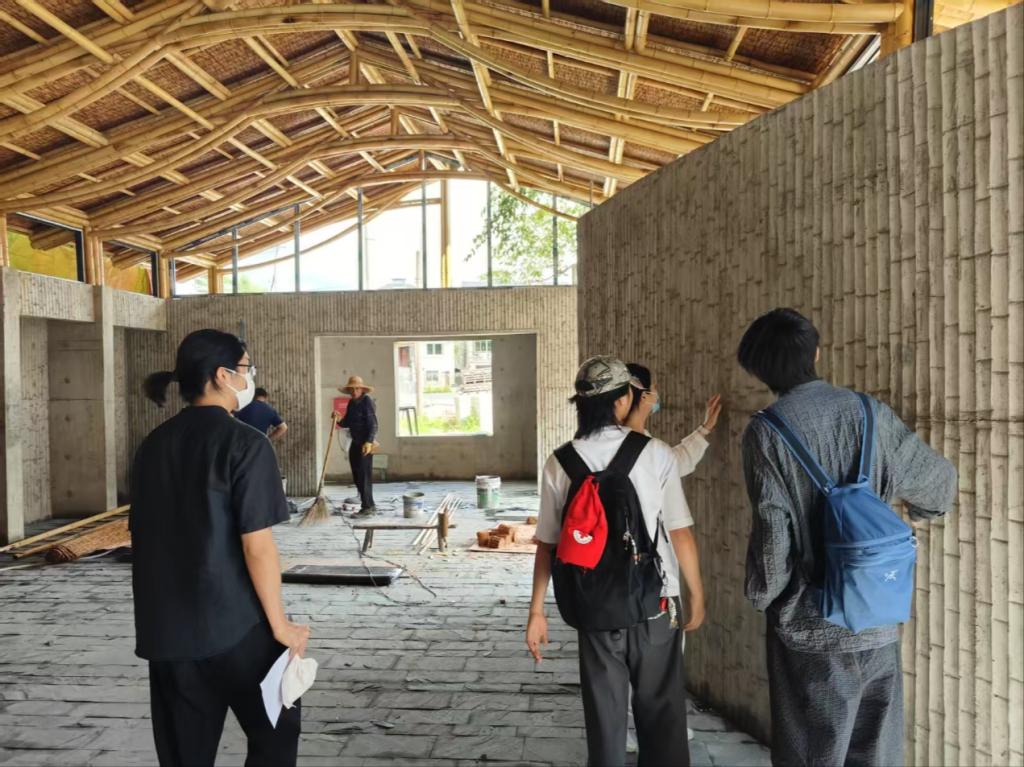 在项目实施的两年时间里,指导老师与七位同学为了确保工程能够顺利推进,调研在村头、设计在现场、吃住在工地,把“真题真做”的教学放在了工程现场。本次建筑设计项目的成功落地,是建筑系师生将专业技能与知识应用于实践的鲜活案例,也是同学们将课堂所学转化为推动乡村振兴的创新动能的具体实践。