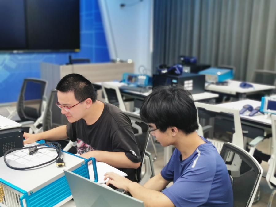 今年7月,华东分赛区比赛在江苏省无锡市举行。高温酷暑下,参赛团队依然保持着高昂斗志和乐观心态。同学们沉着应战、一路过关斩将,参加复赛的四支队伍均收获佳绩,其中电科2102班俞凡杰、电科2101班洪启明组成的参赛队伍顺利晋级全国总决赛。