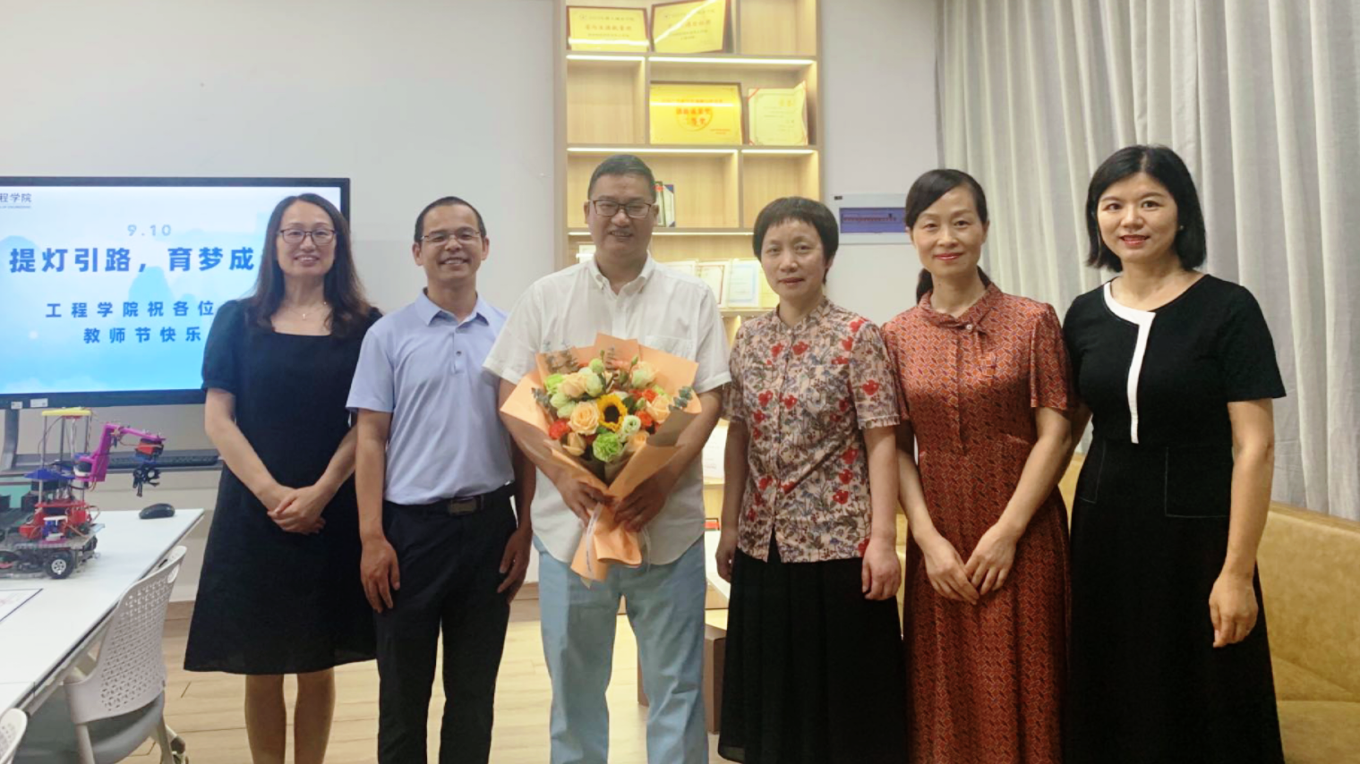 校领导向教师代表送上鲜花,关心询问他们工作、生活和身体健康情况,对他们为学校改革建设和发展做出的重要贡献表示衷心的感谢。希望各位教师深入学习领会习近平总书记关于教育的重要论述和关于教师队伍建设的重要指示批示精神,大力弘扬教育家精神,按照“建院五周年贺信”中发挥“两个优势”、彰显“三个特色”的总要求,专心教学,潜心科研,悉心育人,为党和国家培养更多德智体美劳全面发展的社会主义建设者和接班人。