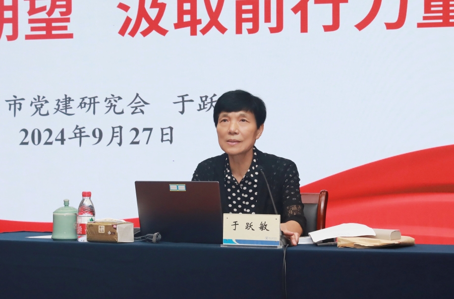 于跃敏详细介绍了杭州市党建研究会开展的《沿着总书记的足迹,深化杭州党建研究》专项课题的研究成果,系统梳理了习近平总书记对杭州党建工作的系列重要指示批示,以生动具体的案例展示了杭州各地深化党建工作的创新实践,并总结了杭州以高质量党建引领高质量发展的经验启示,对学校深入学习贯彻习近平总书记关于党的建设的重要思想,贯彻落实新时代党的建设总要求,全面加强党的领导和党的建设提供了指导。