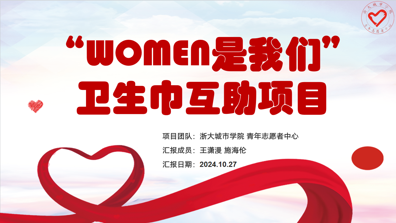 “WOMEN是我们”卫生巾互助活动是由校青年志愿者中心在校团委等有关部门的支持与帮助下,组织发起的特色志愿服务项目,已坚持开展4年时间。该项目从女性常常面对的生理期突然到来但未携带卫生巾的应急需求出发,通过在学校内设置卫生巾互助盒、筹集捐赠卫生巾、建立卫生巾互助群等多元模式,鼓励同学们发扬志愿服务精神,关爱女性,传递温暖,营造和谐友好的校园氛围。
