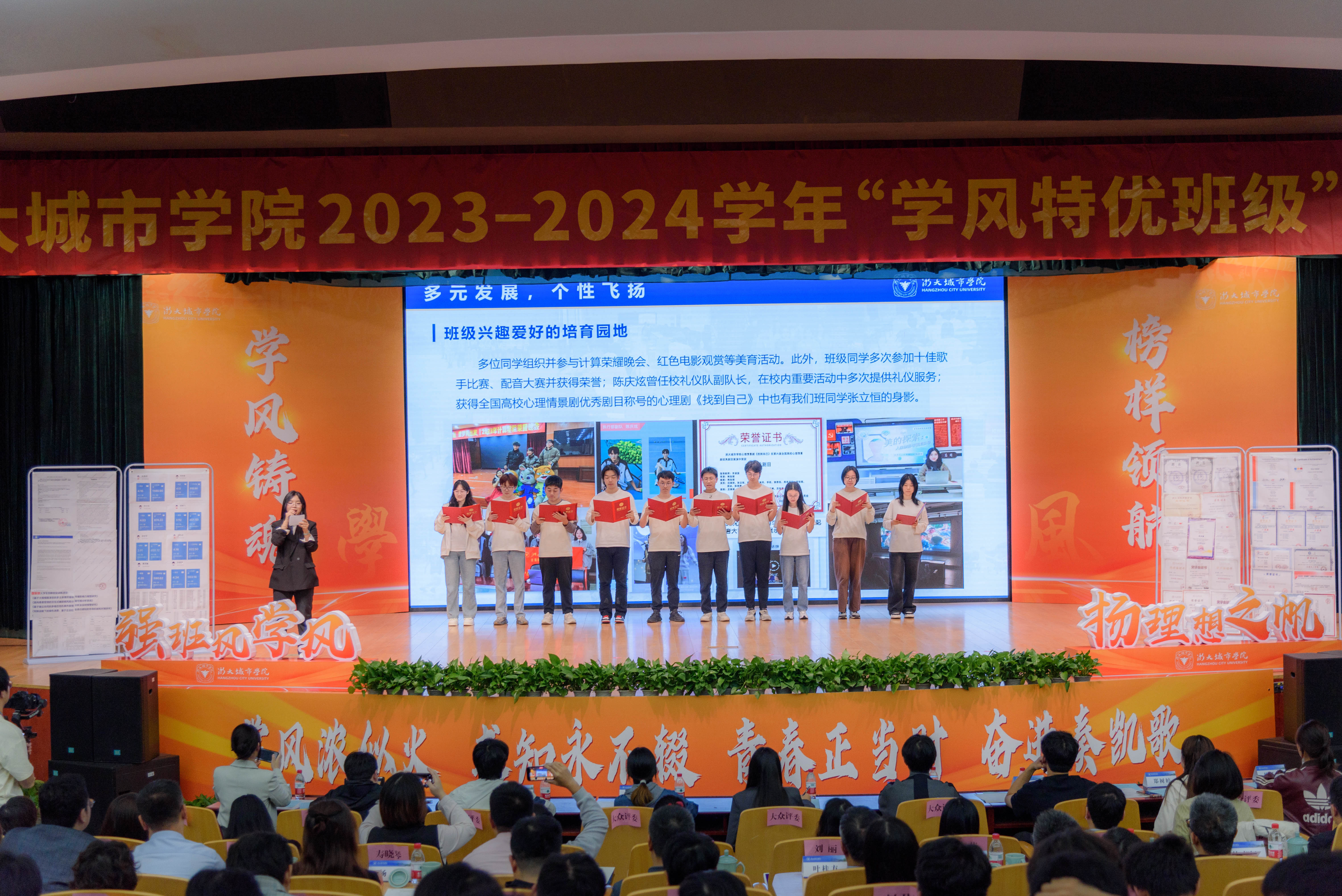 14个入围决赛的班级以丰富多彩的形式,全面展示了他们在党团建设、专业学习、学科竞赛、社会工作及文体活动等方面取得的优异成绩,充分体现了班级学风建设的丰硕成果。在激烈角逐中,共有十个班级获得“学风特优班级”荣誉称号。