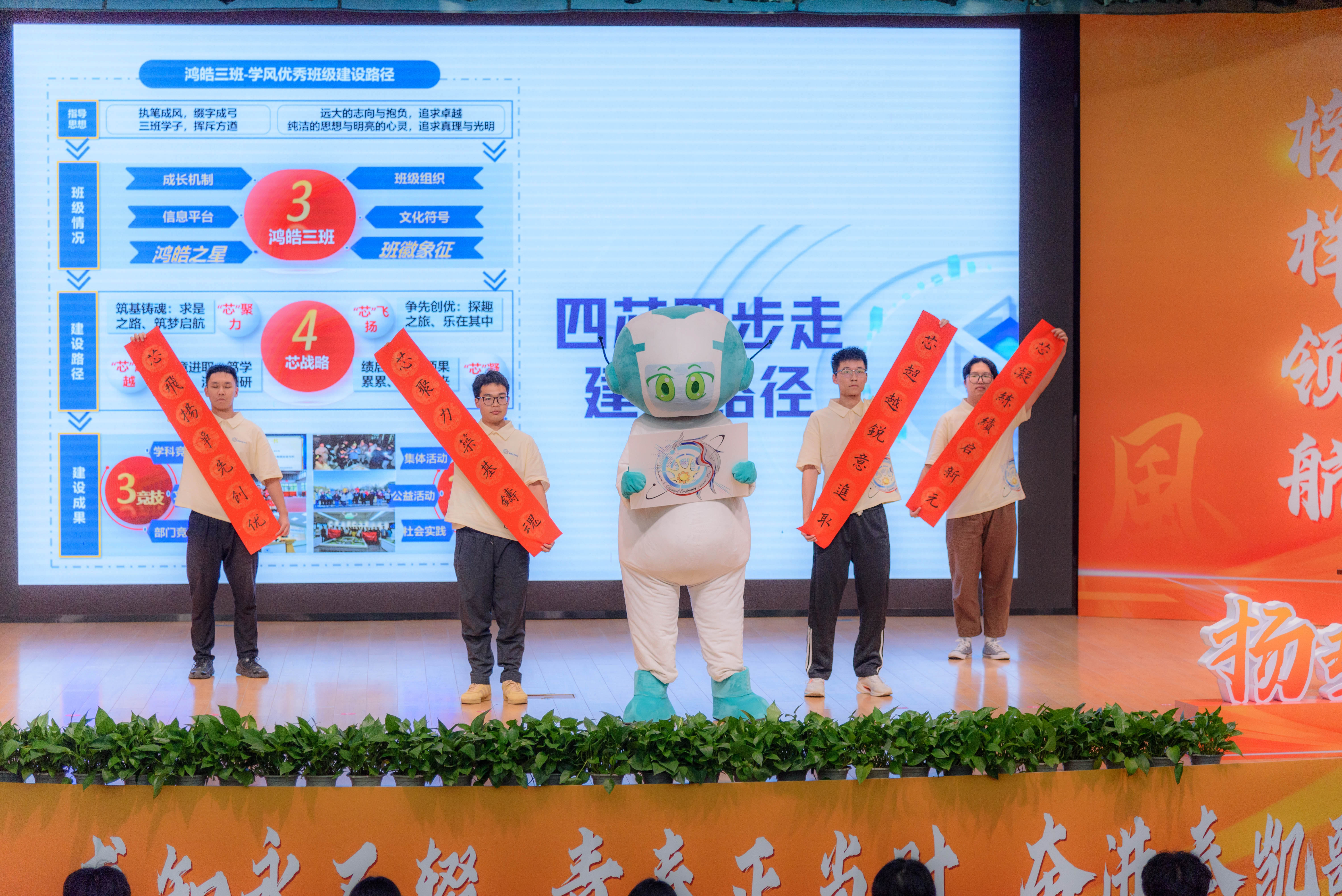 自动化2303 班以“鸿皓”为建设主题,以“四芯四步走”为建设路径,以全面发展为建设目标,成立学风互帮互助小分队。帮助9名同学学期绩点飞跃提升,斩获A类国家级竞赛3项、省级竞赛8项,社会实践和志愿者活动双100%参与,参与学生工作22人次。