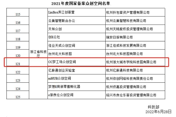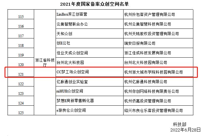 喜报!我校科技园CC梦工场获评国家备案众创空间